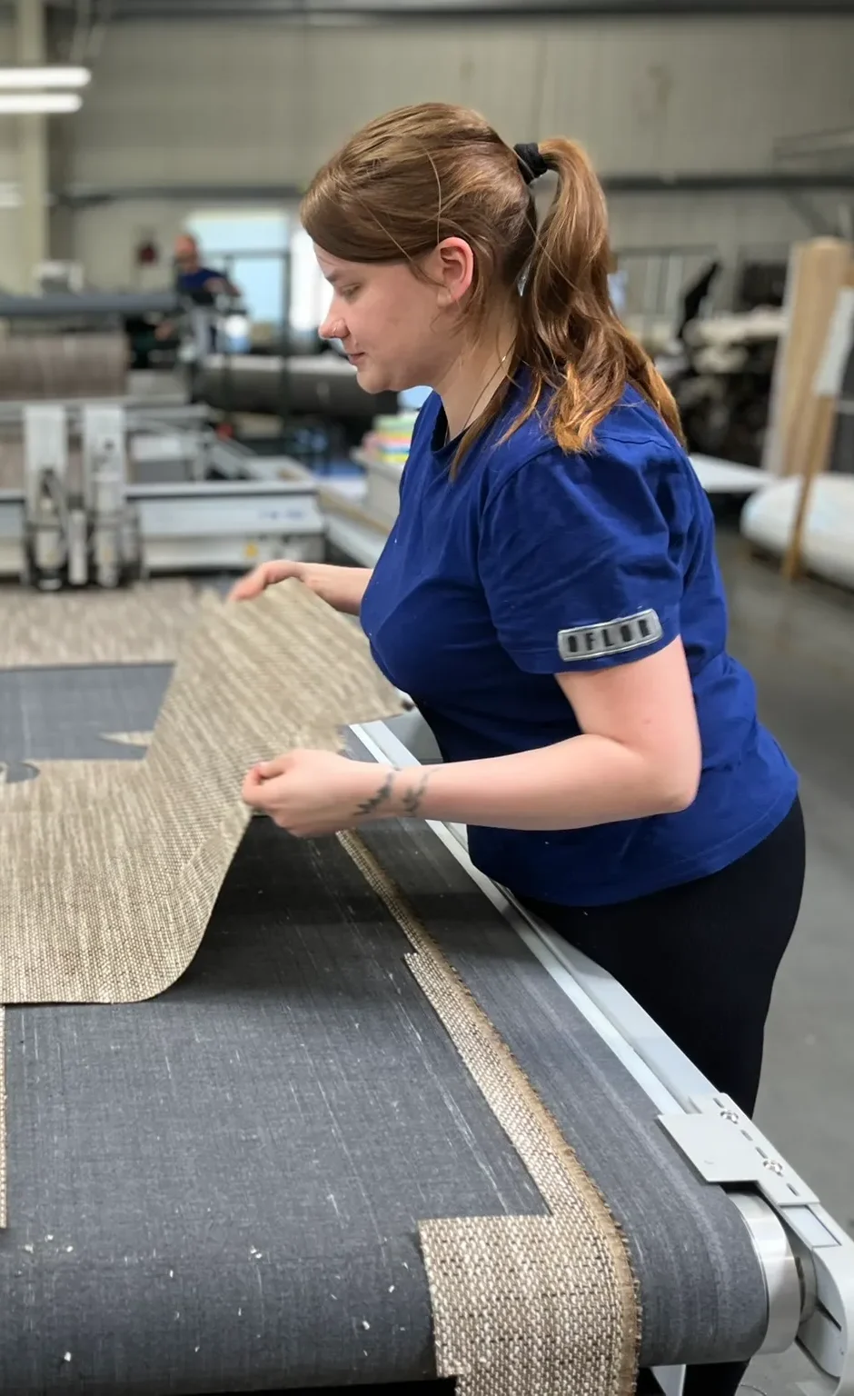 Produkcja opiera się na ścisłej współpracy dwóch działów: krojowni oraz szwalni, co pozwala zachować pełną kontrolę nad każdym etapem powstawania tapicerki.