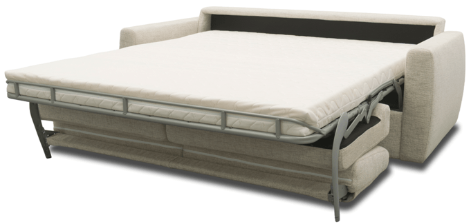 To bardzo proste. Stelaż typu włoskiego – z obracanym oparciem – uznawany jest za jeden z najtrwalszych i jednocześnie najwygodniejszych, a dzięki zastosowaniu w nim pełnowymiarowego materaca o grubości 10-12 centymetrów, bardzo szybko z funkcji wypoczynkowej dziennej przemienia się w funkcję spania.